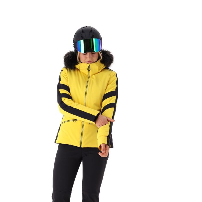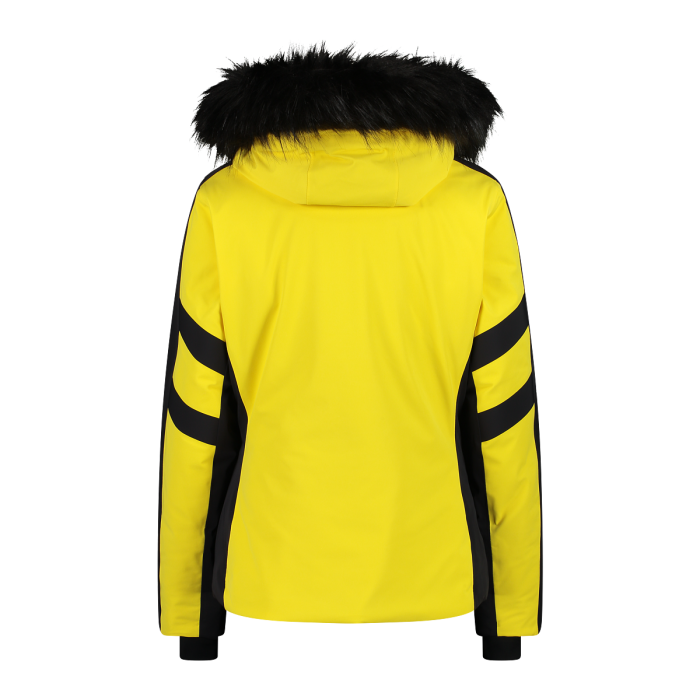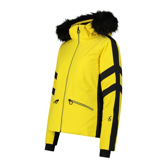 This fabulous womens ski jacket from CMP is padded with Feel Warm Flat insulation, a synthetic fibre that can maintain body heat even in cold and humid conditions, with minimal bulk. The Clima Protect membrane, the outer water-repellent treatment and the fully taped seams guarantee protection from the elements, while maintaining excellent breathability ( WP 20,000 and MVP 10,000 ratings). A set of technologies designed to keep the body warm and dry during the most adventurous days in the snow. The garment is completed with an inner snow skirt, Lycra cuffs with thumb holes, an adjustable hem with drawstring, a front zip with anti-friction and windproof flap, two side zip pockets and a ski pass pocket on the sleeve. This jacket will certainly ensure you stand out on the slopes, for all the right reasons!